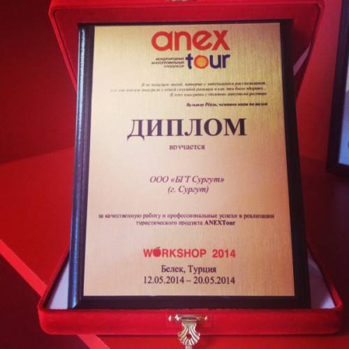 В мае этого года туроператор Anextour решил собрать лидеров продаж на Workshop в прекрасной солнечной Турции. Мне посчастливилось побывать на этом интересном, познавательном, а главное, как для турагента почетном мероприятии. Представителей туристического бизнеса собрали в очень интересном и необычном месте в отеле Royal Adam & Eve 5*, Белек, известном на российском рынке как Адам и Ева. Этот отель знаменит своим хай-тек оформлением, неповторимым дизайном номеров, а также молодежным концептом. Но конечно же мы приехали туда не только отдыхать, мы посещали конференции, встречались с представителями лучших турецких отелей, делились опытом с коллегами. Мы привезли из Турции очень много полезной и важной информации, а это,на мой взгляд,для работников туризма,бесценно. В конце нашего воркшопа нас ждал гала-ужин и награждение дипломами, это и есть результат нашей продуктивной работы. Признание нас туристами и туроператорами - это, пожалуй, главное ради чего мы трудимся! Весь воркшоп президент Анекса благодарил нас за плодотворное сотрудничество, а мы в свою очередь хотим поблагодарить туристов, которые доверяют нам свой отдых!!!